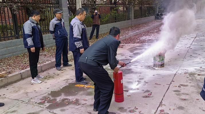 理論學習結束后 ,教員在消防演練現場向大家講解示范了滅火器的使用方法和注意事項,對滅火器的基本操作要點“提、拔、握、壓”進行了現場示范。參加培訓人員躍躍欲試,輪流使用滅火器進行了初期火災撲救演練。搖晃罐體、拔掉保險銷、抓好噴管、瞄準火焰根部、噴射干粉……整個動作一氣呵成,最后順利撲滅火苗。