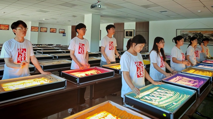 活動期間,同學們還體驗了沙畫藝術創作,觀看了八步沙治沙專題教育片,并積極參與草方格壓沙實踐,親手為荒漠治理貢獻力量。通過理論與實踐的結合,隊員們深刻領悟了“困難面前不低頭、敢把沙漠變綠洲”的八步沙精神。